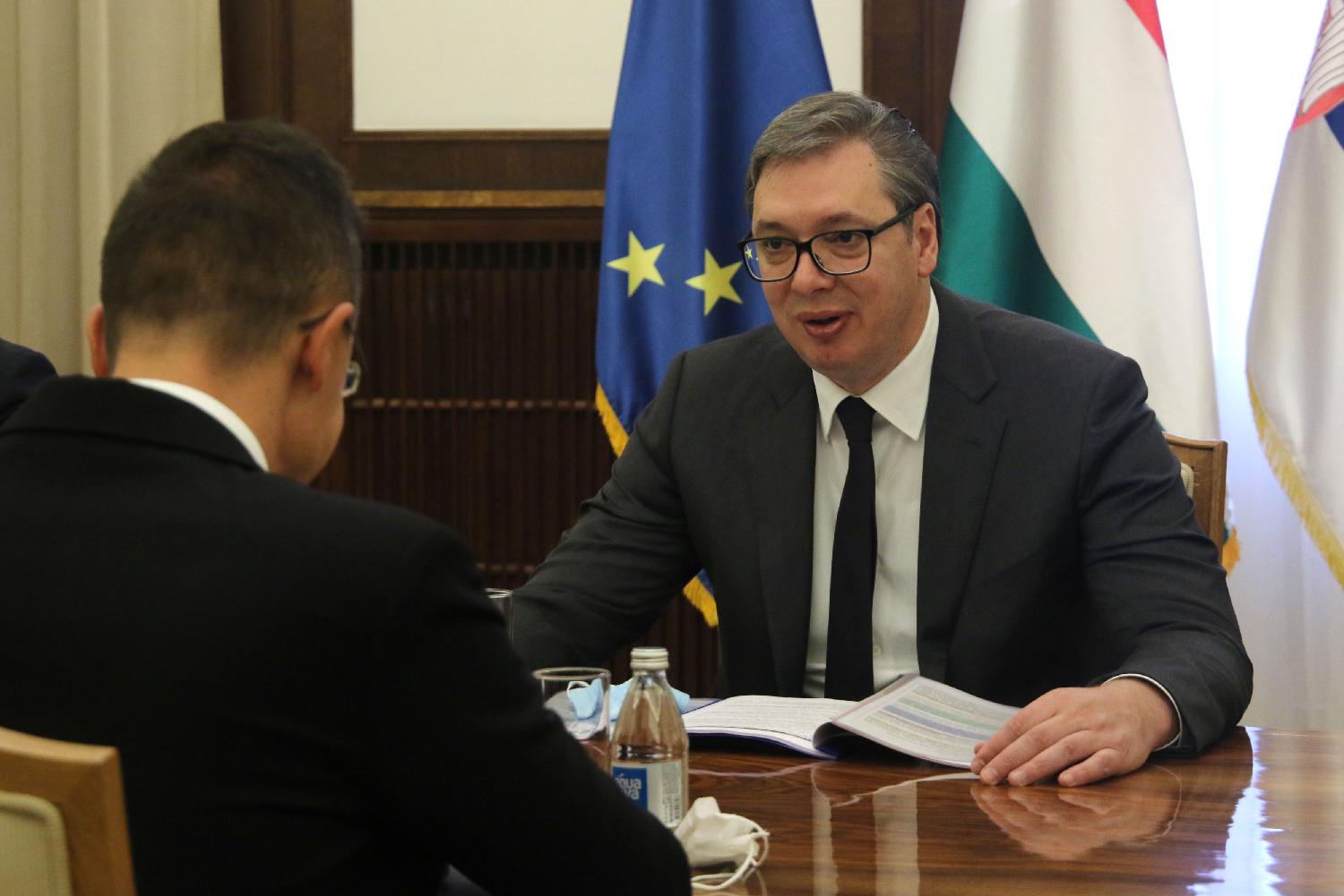 Predsednik Republike Srbije Aleksandar Vučić sastao se danas sa ministrom spoljnih poslova Mađarske Peterom Sijartom, sa kojim je razgovarao o daljem unapređenju bilateralne saradnje, evropskom putu Srbije, borbi na suzbijanju pandemije, tranzitnim kapacitetima, snabdevanju i korišćenju gasa, kao i strateškom partnerstvu dve zemlje u brojnim oblastima.